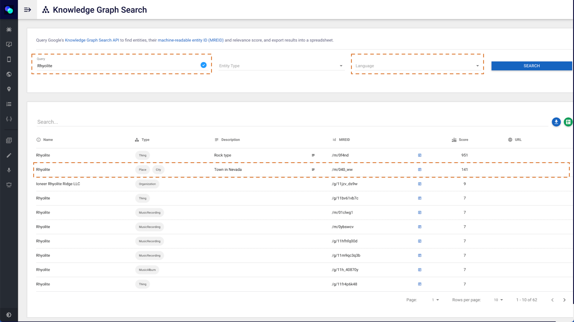 Bei den verknüpften Entitäten geht es nicht darum, möglichst viele zu verwenden, sondern die relevanten. Das sind diejenigen, durch die eine andere Entität (wie in unserem Fall “Rhyolite”) eindeutig wird.