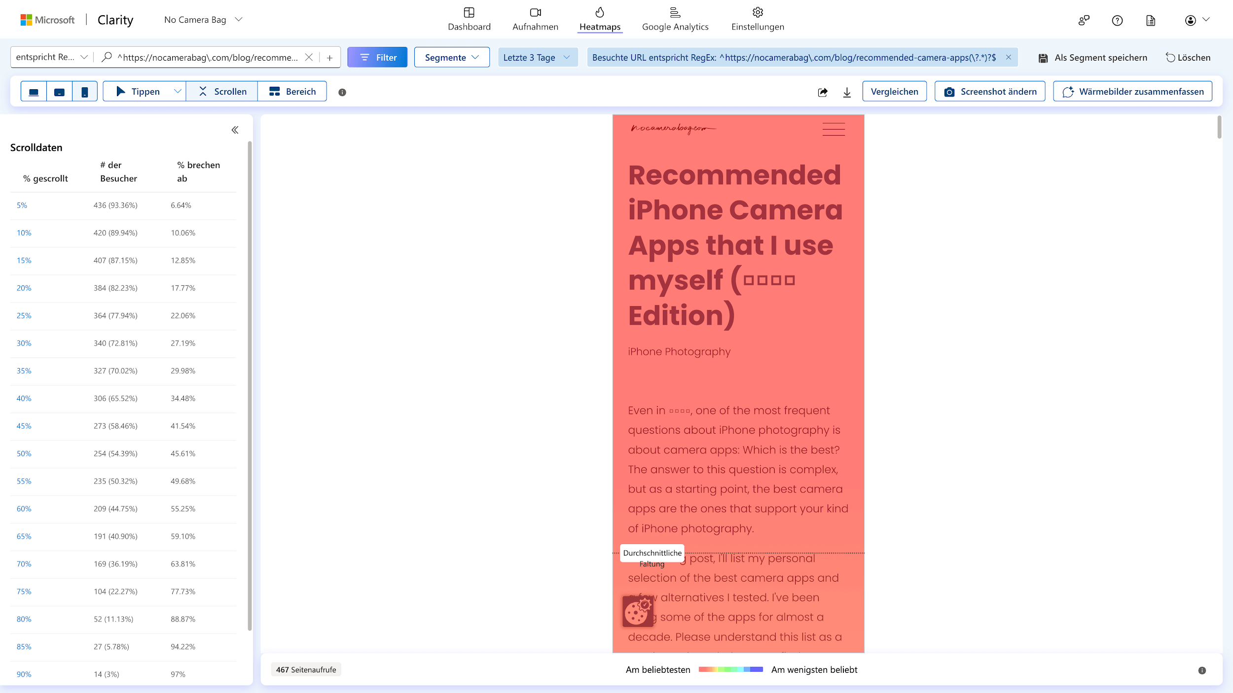 Hinweis: Die letzten beiden Fragen kannst du dir beantworten, indem du eine Scroll-Heatmap und eine Klick-Heatmap parallel anzeigst.