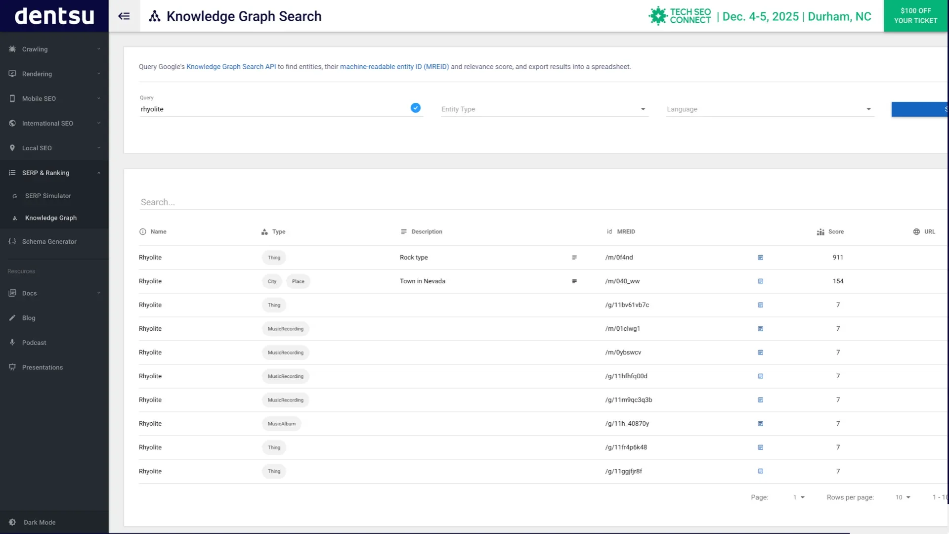Den Google Knowledge Graph kannst du etwa auf technicalseo.com durchsuchen.