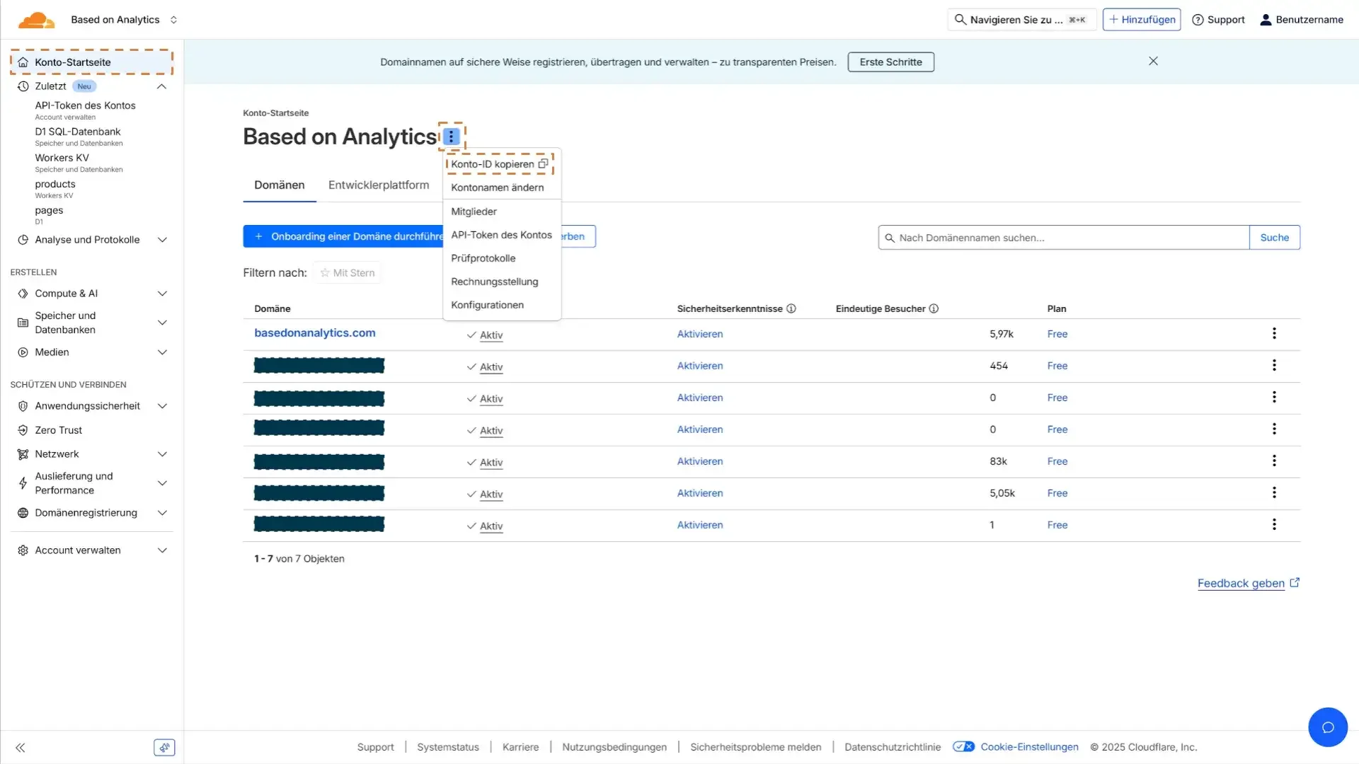 Im nächsten Schritt brauchen wir die Cloudflare Account-ID. Die findest du, in dem du im Cloudflare Account Dashboard auf die drei Punkte klickst. Wähle dann den Befehl "Konto-ID kopieren"